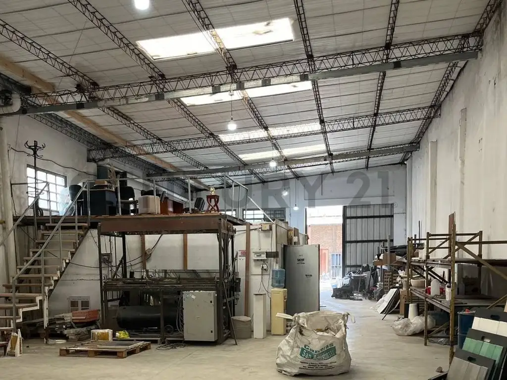 Con 350m2 cubiertos. construido con paredes de mampostería y techo de chapa.