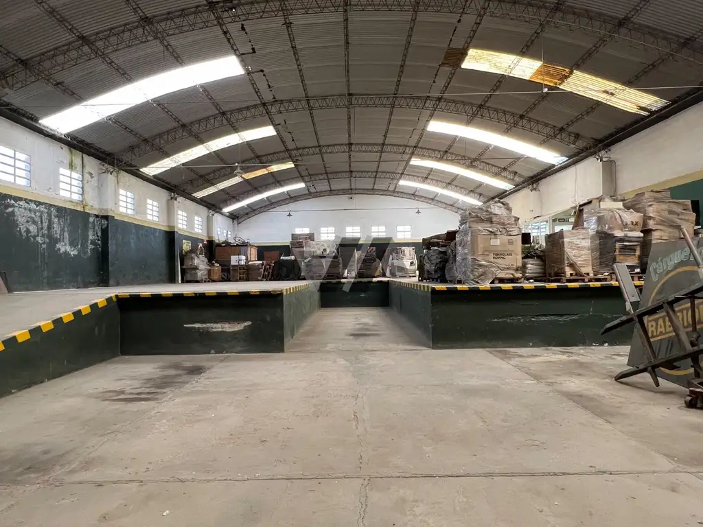 Sobre lote de 32,30 x 43,30 (1394 mts2), amplio galpón de 550 m2 cubiertos, con altura, sin columnas, entrada para camiones, desnivel para carga y descarga. Techo parabólico.