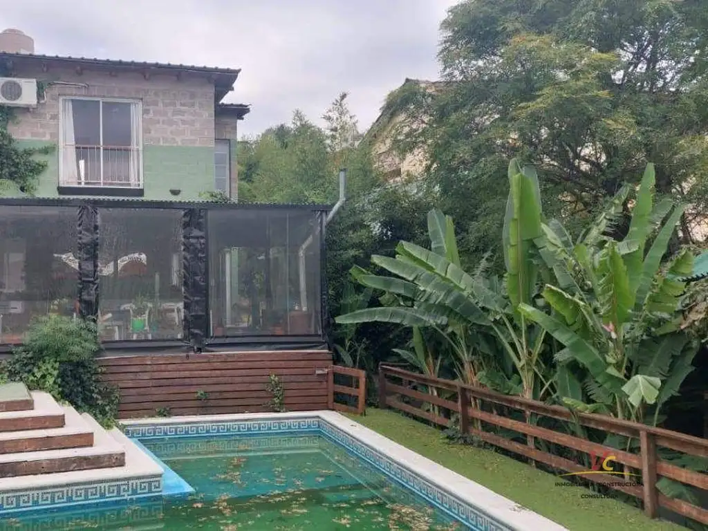 Amplia galería cerrada con acceso a la pileta