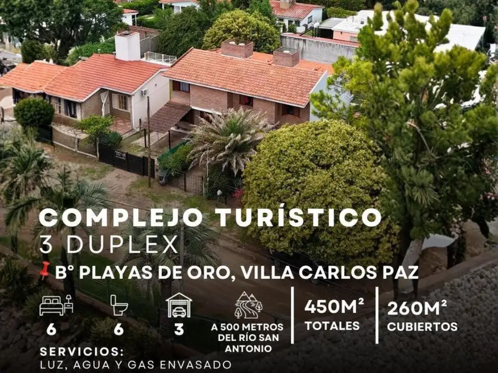 Oportunidad de negocio! Conjunto de 3 duplex de construcción tradicional, 17 años de antiguedad, completamente independientes, aptos para subdivisión, a 500mts del río San Antonio y media cuadra del pavimento.