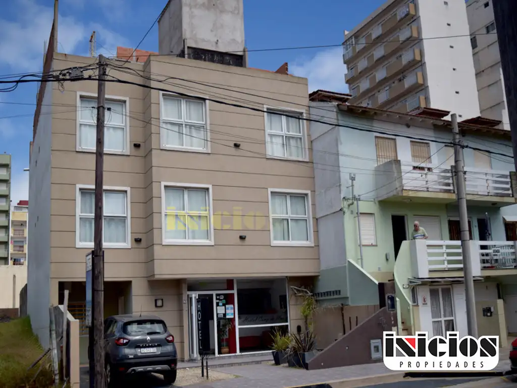 El Hotel cuenta con Catorce habitaciones que conforman 38 plazas, con baños privados (6 habitaciones de 2 plazas, 6 habitaciones de 3 plazas y 2 habitaciones de 4 plazas), Aire Acondicionado Individual, ventiladores, todas con Frigobar, Microondas, TV Led y cajas de seguridad. Preparado para la colocación de un ascensor. Las habitaciones decoradas individualmente están distribuidas en el primer y segundo piso, cuentan con una excelente luminosidad natural, las habitaciones que dan al frente tienen una hermosa vista lateral al mar y las habitaciones contra frente tienen vista al solárium con pileta, en el cual se encuentra un sector de parrillas; lobbie, confitería, completamente equipado, con baño dama/caballeros.- Plano aprobado para construir en el 3er piso ir 80 m2.- (equivalente a 3 habitaciones). Excelente ubicación a metros de la Playa, restaurantes, farmacia, supermercado, locales comerciales de diferentes rubros y a tan solo 300 metros del comienzo de la peatonal. Superficie cubierta 450 m² aprox. - Terreno 300 m