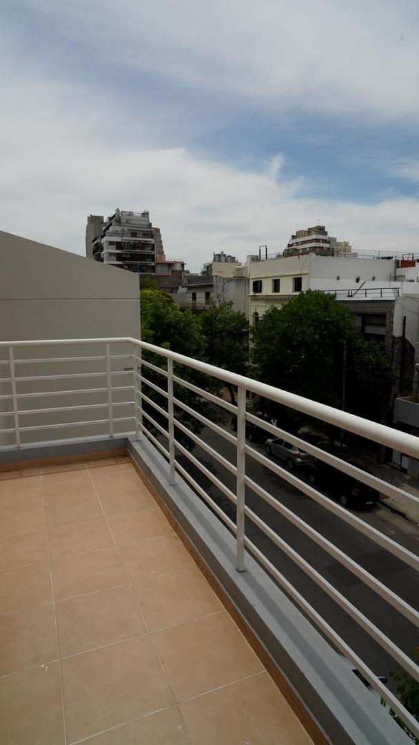 El interior comienza con un luminoso living de recepción, con revestimientos en tonos neutros y excelente calidez. A la izquierda se encuentra una habitación al frente, con baño completo enfrentado.