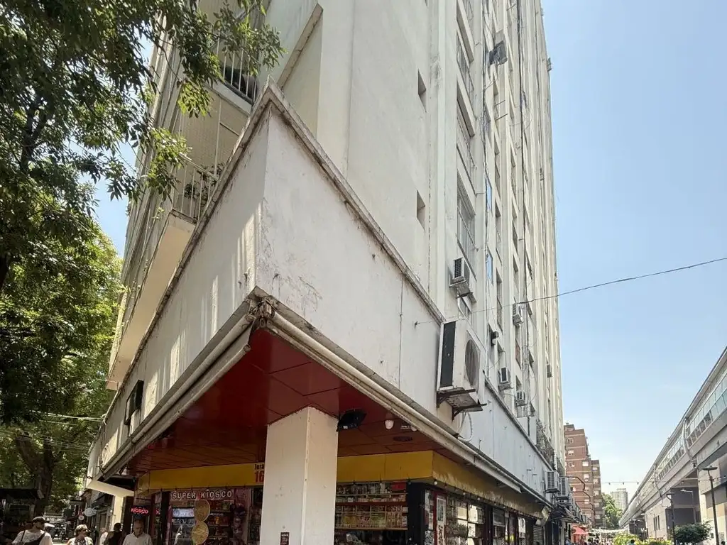 Con gran vidriera en L de 20 m de largo., ingreso ubicado en ochava del edificio
