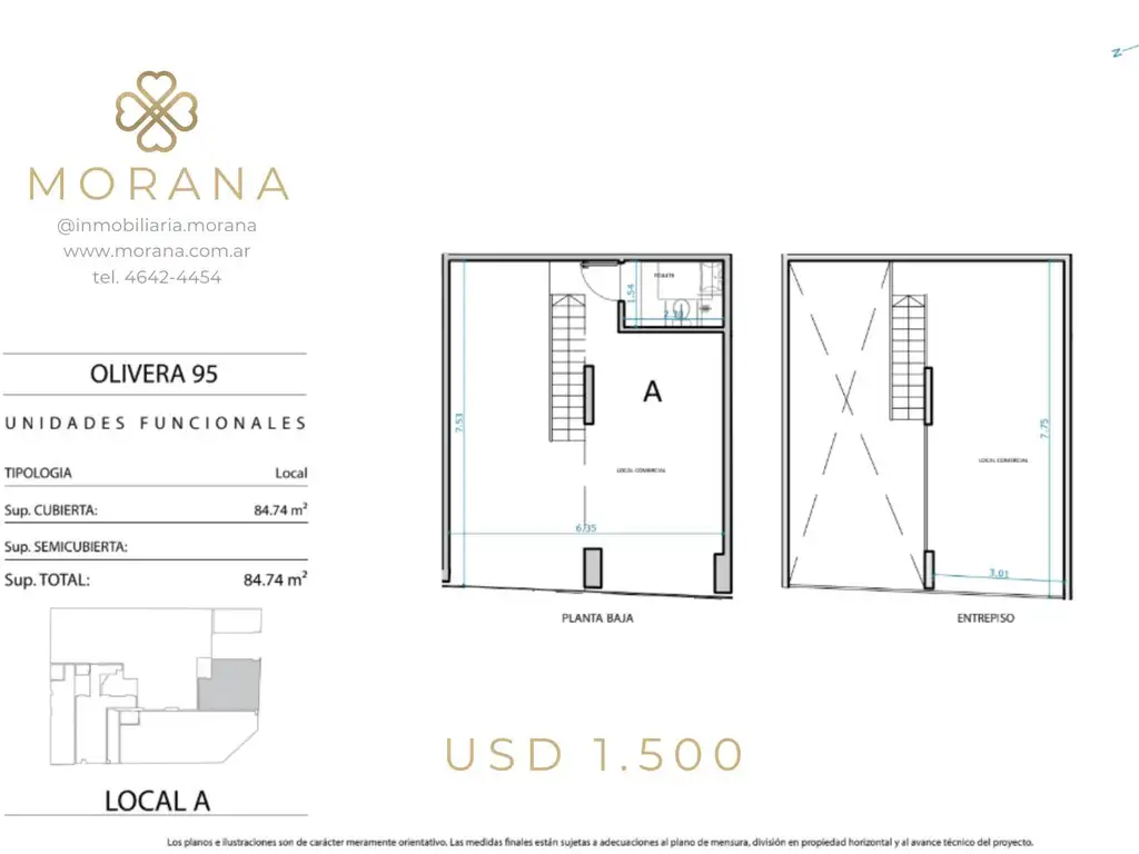 El mismo forma parte de un emprendimiento en desarrollo en una de las importantes esquinas del barrio en la intersección de Cnel. Ramón Falcón y Olivera, frente al Olimpo, una zona en constante movimiento y con el transito de diversas líneas de colectivos.