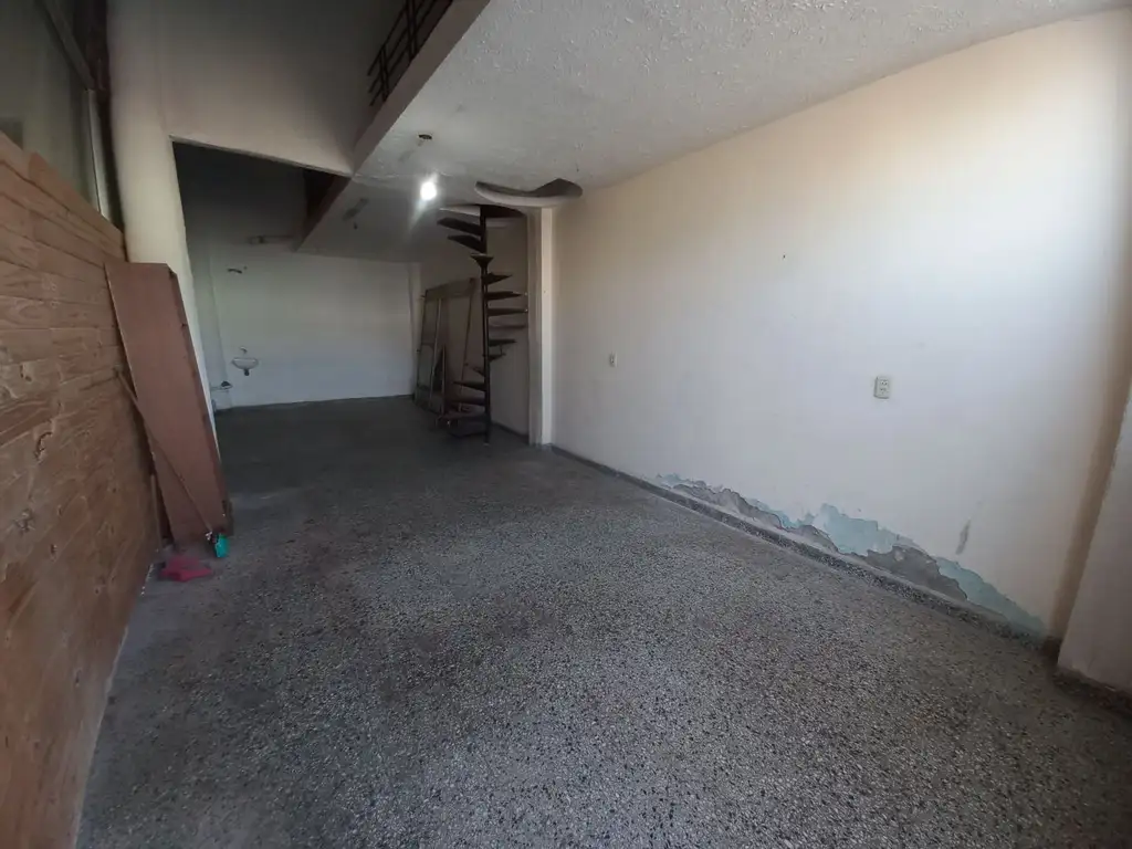 Local con piso de mosaico, baño privado en PA, entrepiso y vidriera.