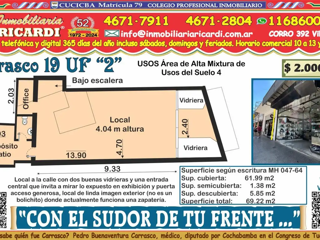 Emplazada en una de las mejores ubicaciones de floresta comercial dada que es paso obligado por la proximidad con la zona bancaria e infinidad de variado Comercio Y medio de transporte por doquier donde camina peatonalmente mucha gente