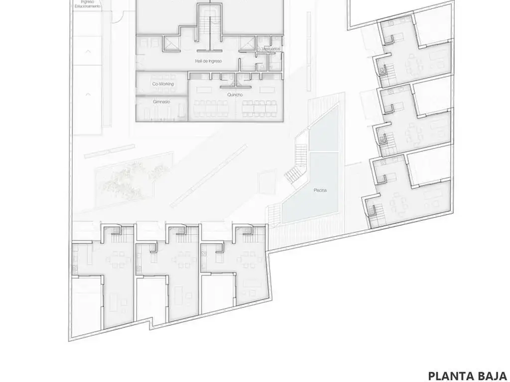 El edificio está ubicado en una zona residencial caracterizada por su tranquilidad. El proyecto se encuentra en el primer anillo perimetral de la ciudad de Rosario, cercano al corredor gastronómico de Av Pellegrini y a metros del corredor urbano calle Buenos Aires, lo cual lo conecta de forma inmediata con la planta urbana de Rosario. Ubicado en un lote irregular de grandes dimensiones el proyecto está conformado por una torre exenta de 6 pisos con unidades de 1 , 2, 3 y 4 dormitorios, los últimos pisos cuentan con terrazas exclusivas . También cuenta con un conjunto de casas con patios que se articulan dentro del complejo mediante una plaza seca perteneciente a todo el conjunto. Los departamentos fueron pensados para satisfacer la necesidad de usuarios que busquen diseño, espacios amplios y versatilidad. Además, el complejo cuenta con cocheras ventiladas y bauleras, de acceso directo a las áreas comunes como al edificio principal. El diseño integral del edificio consolida un lenguaje arquitectónico contemporáneo que mezcla materialidades en búsqueda de la complejidad formal de las cuatro fachadas del edificio exento y dialoga con la estética de las casas. La inclusión de elementos metálicos en la fachada nos ayudo a alivianar el sistema estructural de los balcones, desdibujando una grilla y aumentando la permeancia de los ambientes hacia el norte. Al este y al oeste las fachadas se materializan con ladrillos y rejas galvanizadas, ganando mayor protección higrotérmica pero logrando un lenguaje de transición hacia la fachada sur, que repite la fachada norte con algunas caracteristicas propias de la orientación.