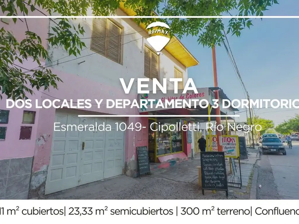 VENTA DOS LOCALES COMERCIALES + DEPARTAMENTO TRES DORMITORIOS EN CIPOLLETTI, RIO NEGRO.