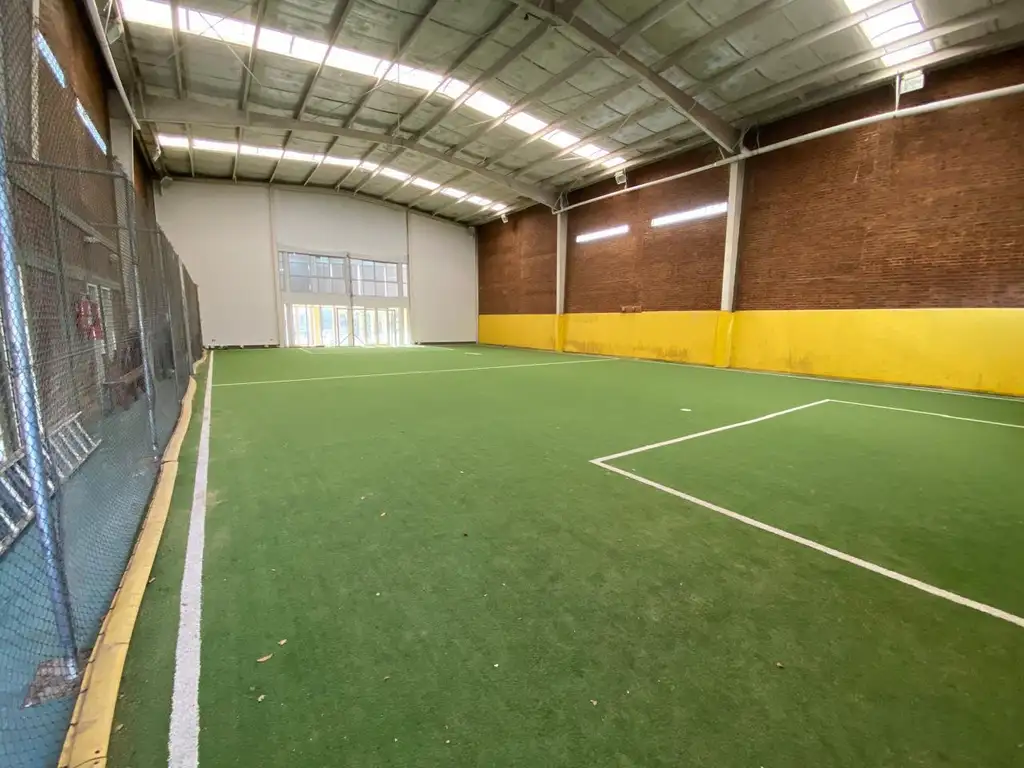 Actualmente acondicionado como complejo deportivo con cancha de futbol 5, ideal para salón de fiestas, gimnasio, concesionario de autos, organismos públicos, etc. Cuenta con doble altura de 9 mts soportado por columnas perimetrales, paredes de medianera de 30 cm de ladrillo común preparadas para soportar un segundo nivel, patio descubierto de 150 m2, luz trifásica y techo parabólico.