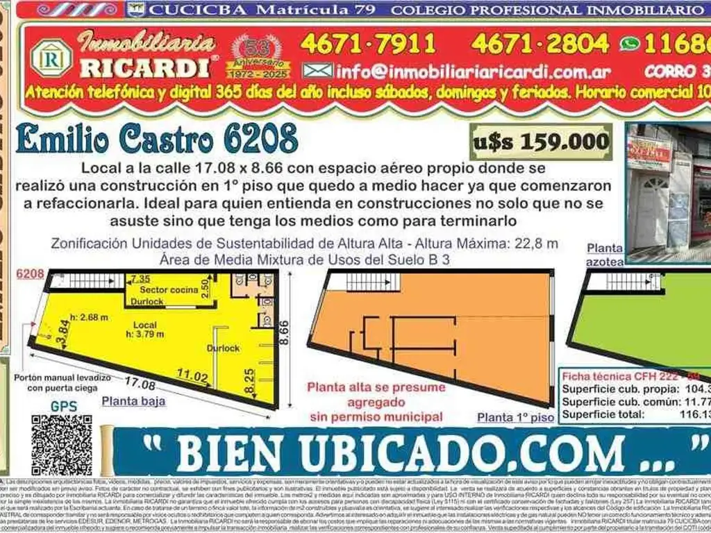BIEN UBICADO PUNTO COM local + obra 1º piso a terminar