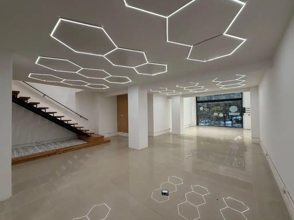 La entrada se da por un frente con 3 metros de vidriera, continuando al local es una planta libre de 7m, en el ingreso con una altura de techos de 5m. Hacia el fondo encontramos cocina y los baños. Los pisos son de cerámica, todo los artefactos, tanto de baño como eléctricos funcionan a la perfección, las paredes estan recién pintadas y su estado de mantenimiento es optimo.