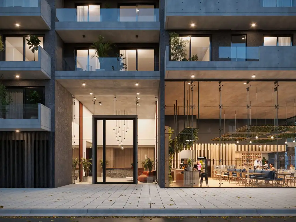 El edificio cuenta además con dos subsuelos destinados a cocheras y espacios para bicicletas, y un amplio local comercial de doble altura en la planta baja-