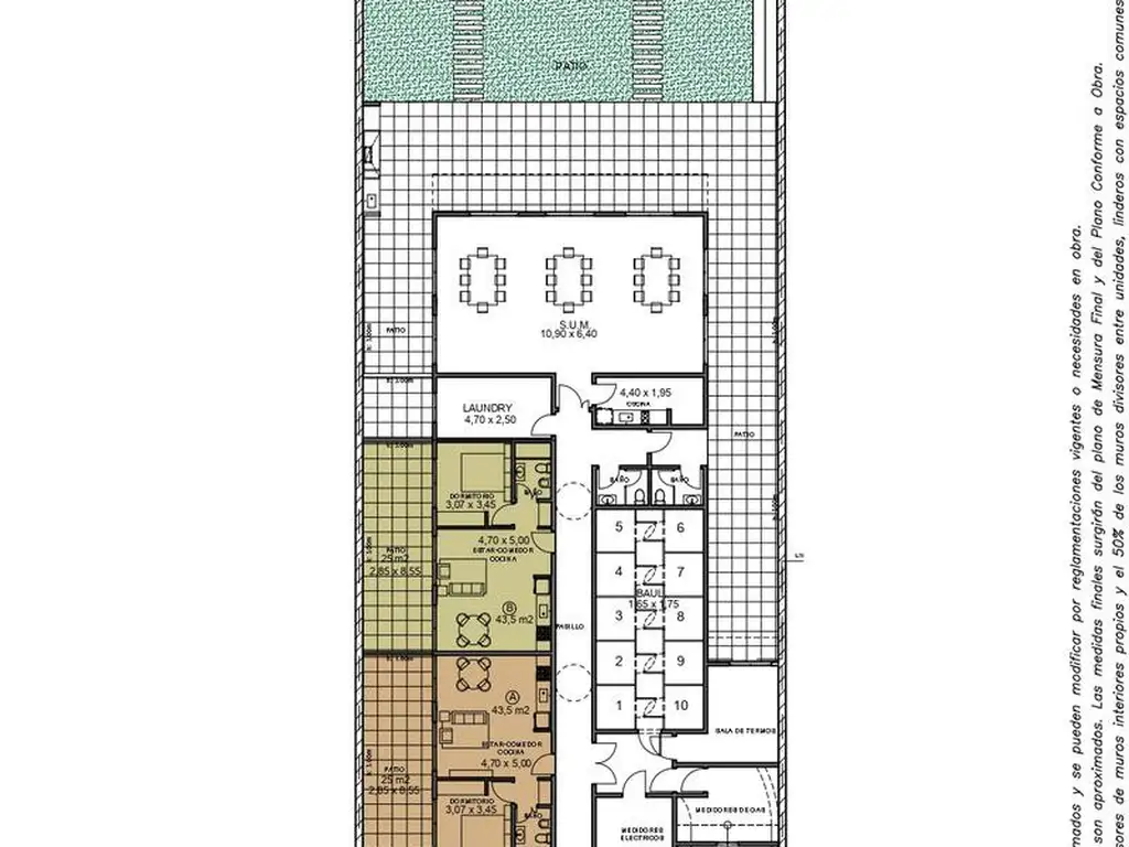 Planta baja = 1 Local comercial de 71 m2 cubiertos con baño y patio descubierto de 20 m2.