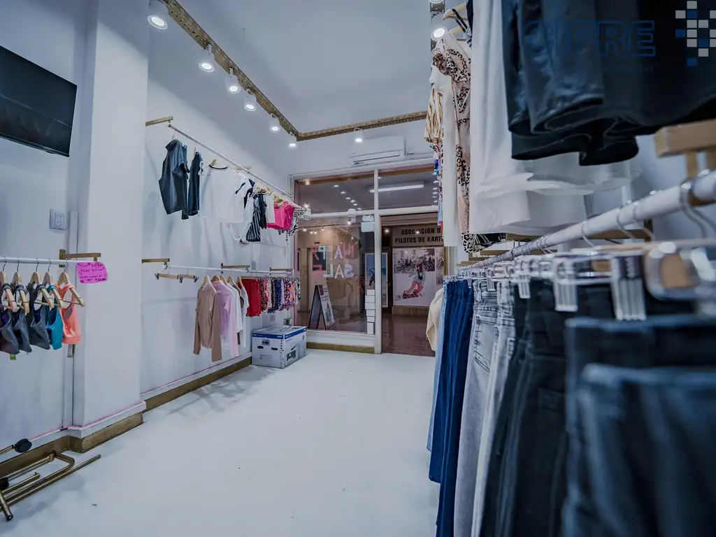 Vidriera a la derecha. Pisos de microcemento, percheros en ambos laterales del local símil metal cobre al igual que los rieles de luminarias en el techo. Esta en excelente estado, cuenta con A/A frio calor.