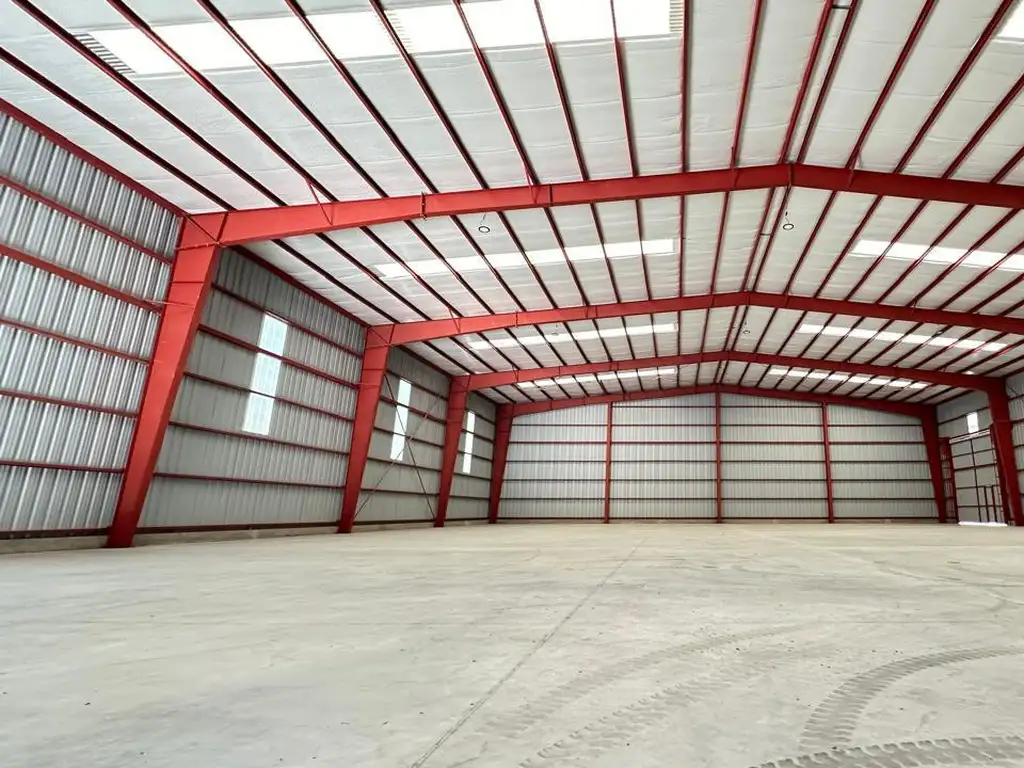 con 7,90 mts de altura a la cabreada, y 8,60mts a la cubrera, con chapas traslucidas para una excelente iluminacion natural.