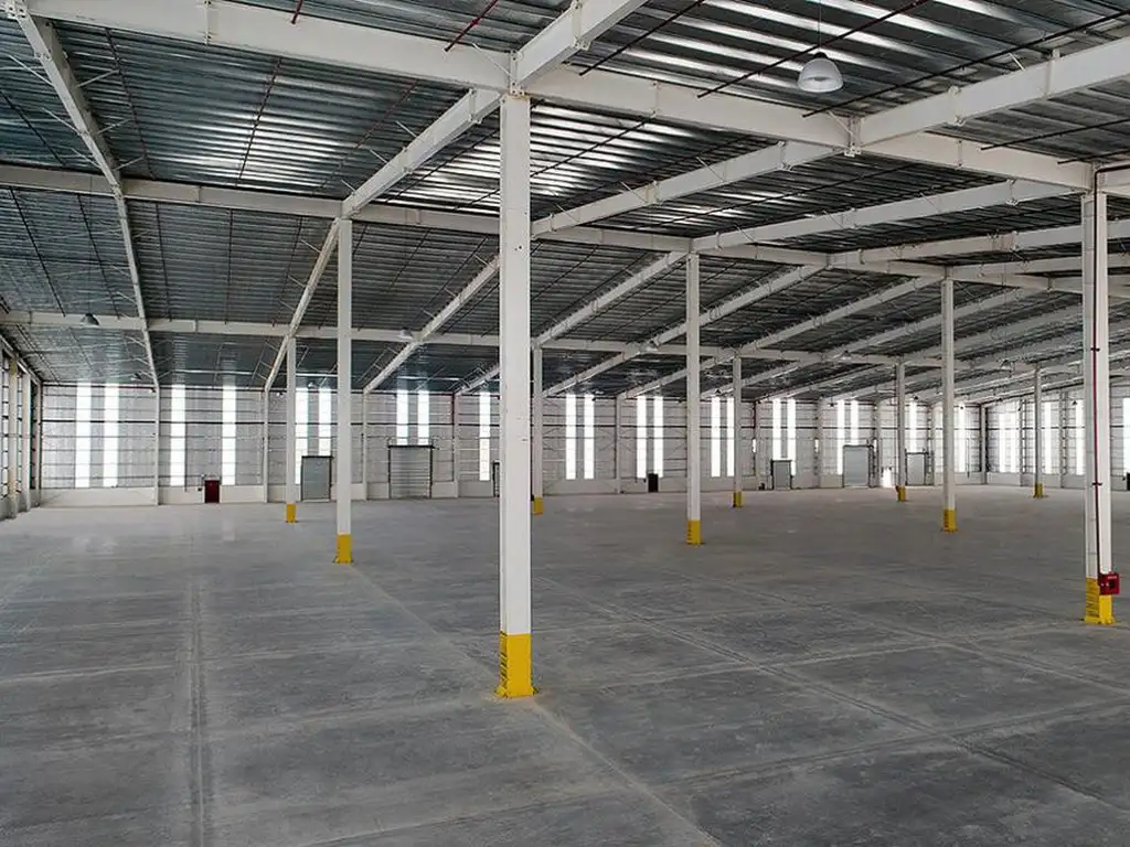 La nave cuenta con una superficie cubierta de 6.000 m2 con una altura libre de 10 mts con Iluminación natural con chapas traslucidas en paredes laterales mas iluminación general de lámparas Led. El deposito cuenta con oficinas y vestuario, alambrado olímpico perimetral.