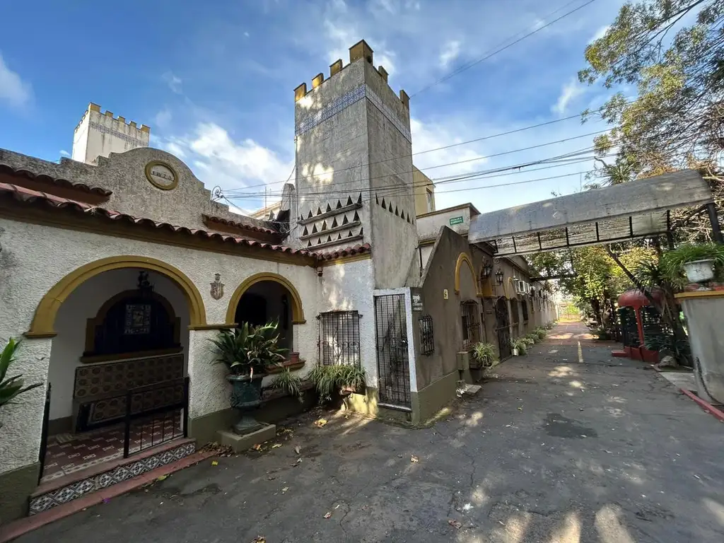 Edificio comercial sobre gran terreno en venta en Carapachay, Vicente Lopez:5.883m2 de terreno, con 95mts de frente sobre calle Santa Fe (abarcando toda la cuadra). 60 mts sobre calles laterales, es decir tiene posibilidad de salida a tres calles. Posee una construcción de 2744m2 aproximados cubiertos distribuida en 3 construcciones: Un edificio de 3 plantas, un anexo estilo colonial español y una casa de una planta en uno de los laterales. Aproximadamente se encuentra libre de construcción el 70% del predio.Cuenta con calles internas para el acceso vehicular. Arboleda predominante en todo el predio.