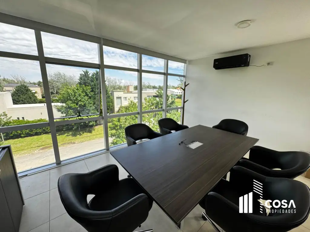 Oficina en alquiler en el complejo de oficinas CRISTALINA, ubicado en la esquina de Av Real y Pje Pascuali, en el corazón de Aldea. Frente al Barrio cerrado Country Golf, a metros del colegio Los Arroyos y del Fisherton Plaza Mall.