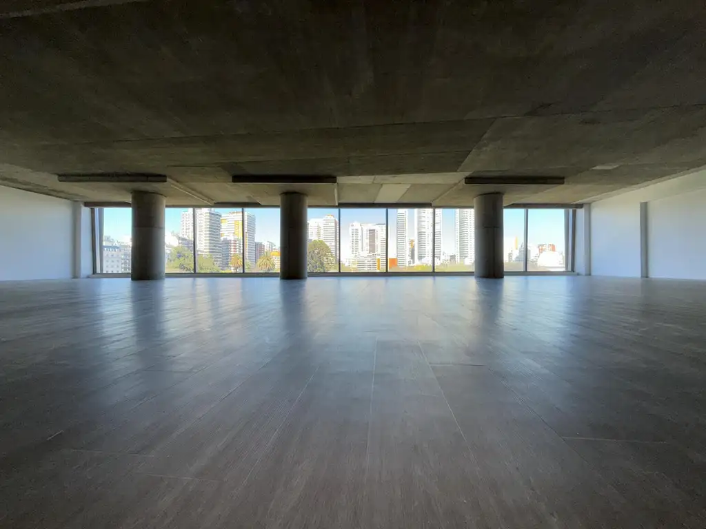 Planta libre (18.50x14.50) con piso de porcelanato simil madera, 3 baños y office, más depósito/archivo. Impresionantes vistas a Parque Las Heras al frente y pulmón de manzana abierto al contrafrente. Doble vidrio en toda la unidad (super silencioso). Aire acondicionado.