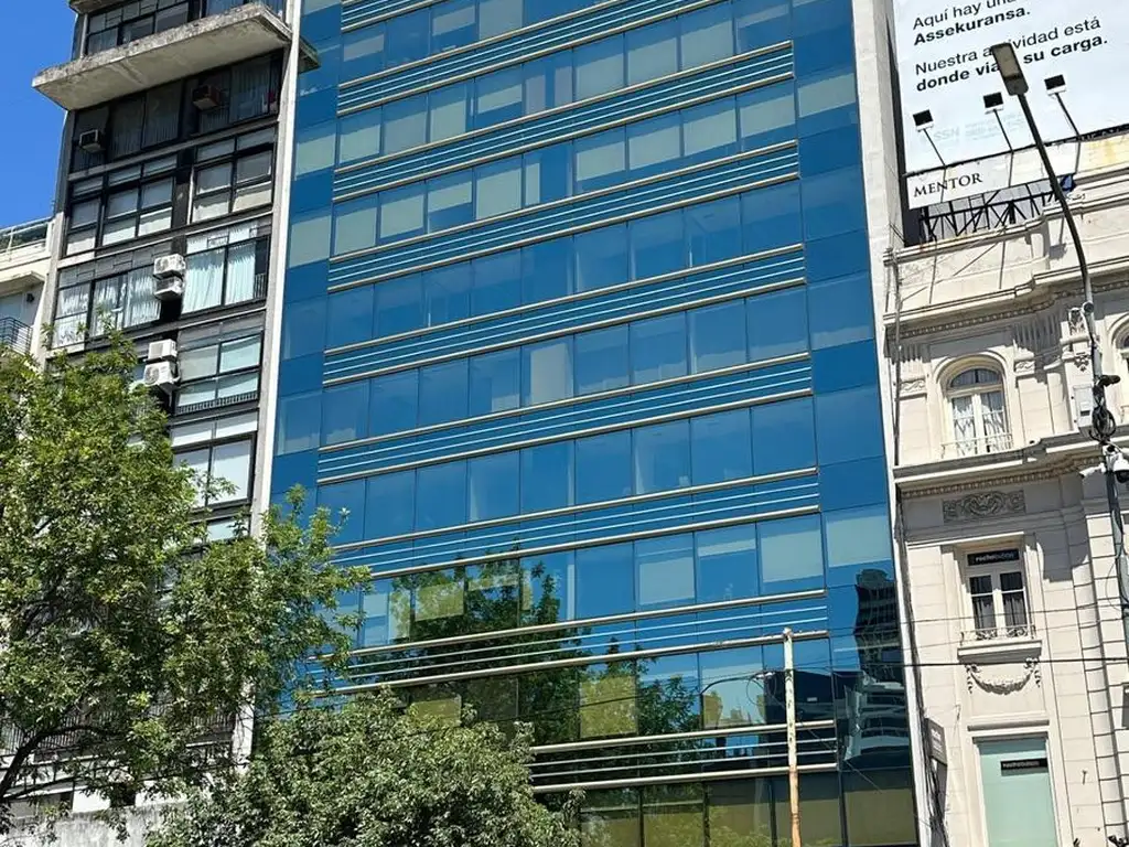 Edificio entre medianera de muy buena categoría. Gran fachada en curtain-wall en doble vidrio con cámara de aire (DVH). Desarrollado en planta baja y 13 pisos. Planta semidividida con piso técnico flotante. Vista panorámica a 9 de Julio. Aire acondicionado central f/c propio. 3 ascensores Thyssen. Baños generales, privado y office con anafe y termotanque. Grupo electrógeno para ascensores, bombas de agua, incendio e iluminación. CCTV. Seguridad 24 hs. Recepción, 3 despachos al frente y dos salas de reuniones. área de trabajos para 6 puestos. 4 despachos al contrafrente y área de trabajos. Muy buen estado general.