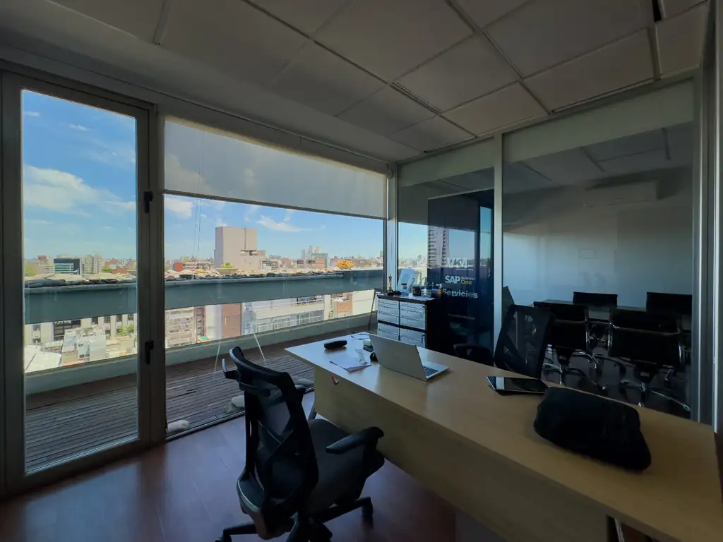 Continuando con la oficina en si, se encuentra ubicada en el piso mas alto de la torre como piso exclusivo. La unidad tiene una superficie total de 163 m2, ademas, cuenta con piso y cielorraso tecnico, kichenette, dos baños de uso privado y un balcon exclusivo con vista al frente hacia toda la ciudad..