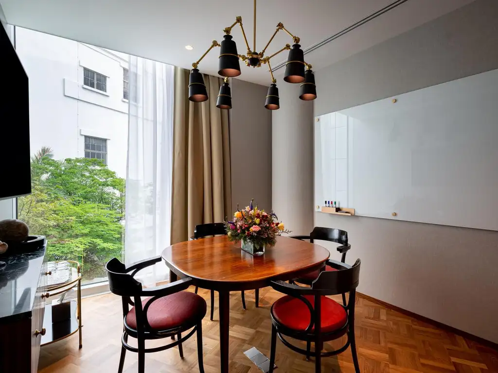 El espacio de oficinas en No18 El Globo ofrece una selección de espacios de trabajo que se adaptan a cualquier negocio. Elija entre suites de oficina personalizables o escritorios compartidos en un espacio de coworking social y colaborativo . Aproveche los beneficios del trabajo híbrido reservando el espacio elegido durante el tiempo que necesite, desde unas pocas horas hasta varios meses. Presente a nuevos clientes potenciales o comparta sus ideas con colegas en salas de reuniones equipadas con televisores de pantalla plana, equipos de presentación y tecnología de videoconferencia. Después del trabajo, disfrute de los beneficios de trabajar en el centro de Montevideo descubriendo la rica cultura de la ciudad y pasando tiempo relajándose en los numerosos cafés, restaurantes, parques y plazas cercanas.