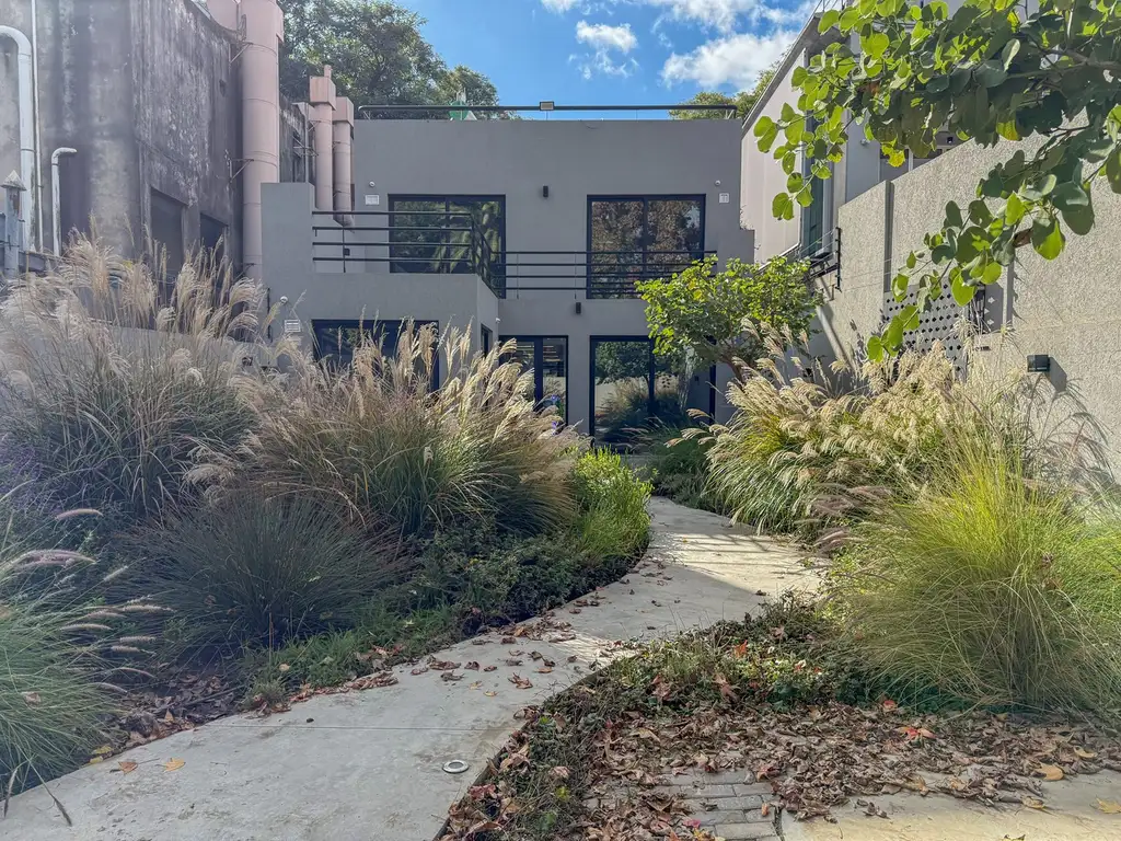 Muy lindo edificio de oficinas de dos plantas. En planta baja amplio espacio de planta libre, office, comedor, tres baños (uno para discapacitados). Salida a jardín que da al pulmón de manzana.