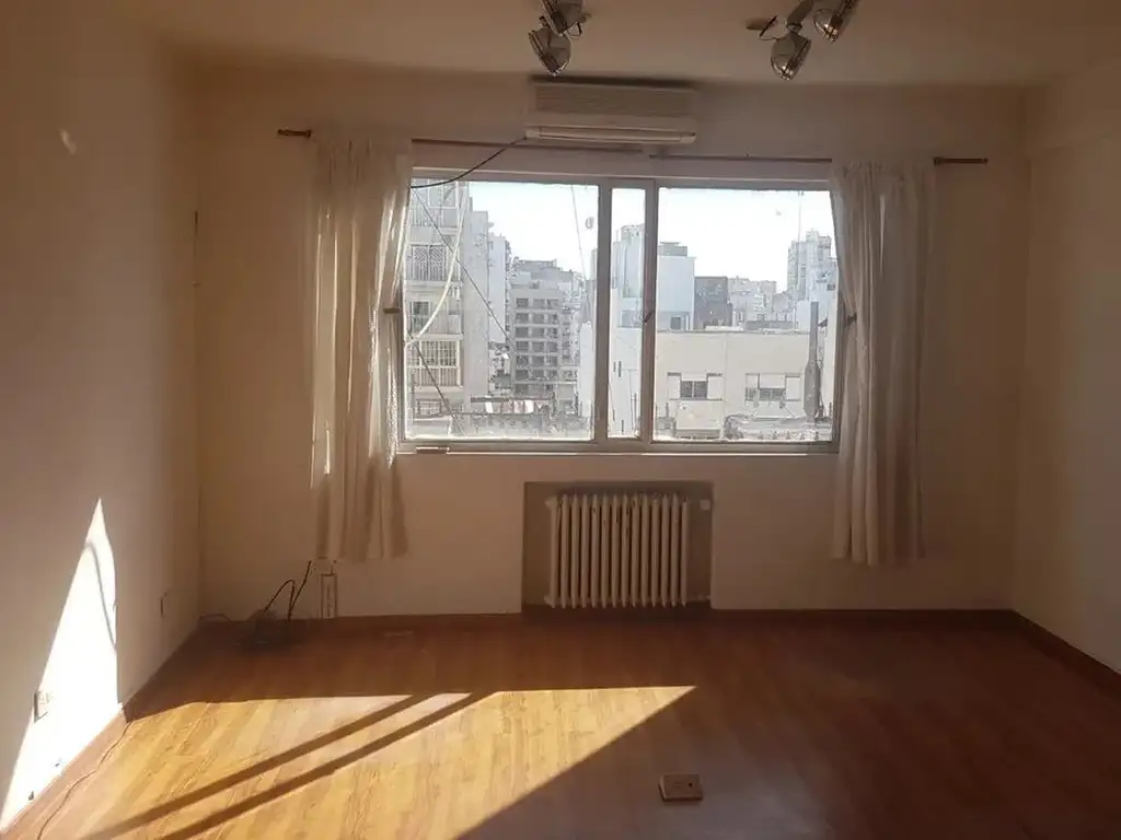 Oficina al contrafrente. 7º piso. Orientación norte. Superficie de 26m2 cubiertos y totales. Baños compartidos en el piso. Aire acondicionado frío/calor. Muy buen estado, luminosa. Pisos de madera.
