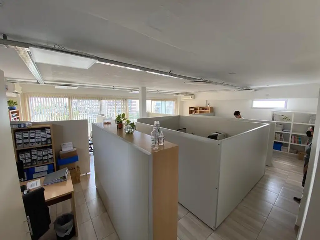 1- área de trabajo de 8x7 apaisado al frente con salida a balcón (10x1) con vista panorámica