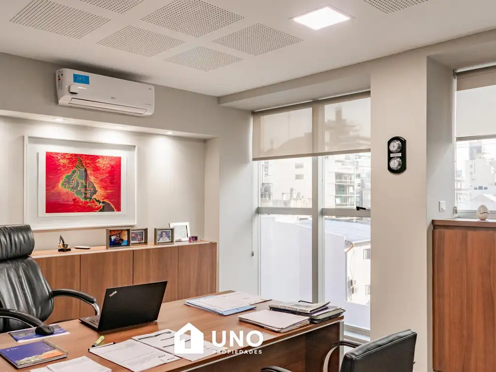Gran oficina en piso exclusivo de 160 m con Ventilación Cruzada , ALQUILADO hasta Marzo 2028. Amplio espacio abierto repartidos en dos cuerpos (frente y contrafrente), que se comunican también por el palier, cuenta con una office y dos toillet. Una cochera incluida en el valor.