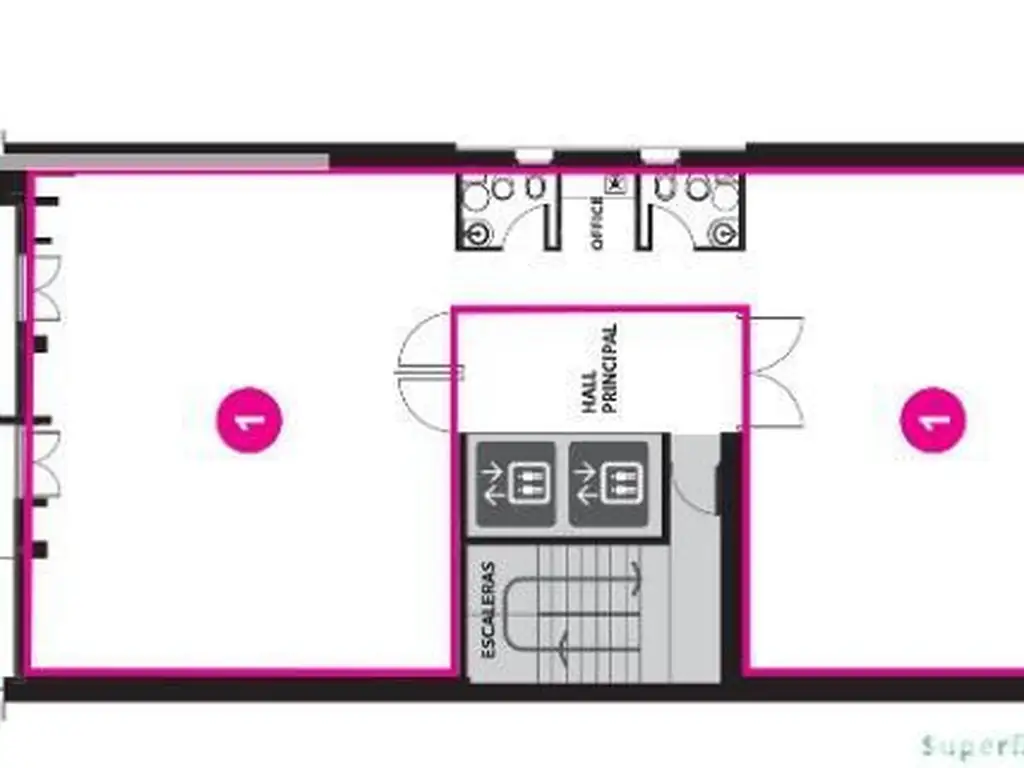 El piso es compartido entre dos oficinas. Cada una con sanitario y office exclusivos.