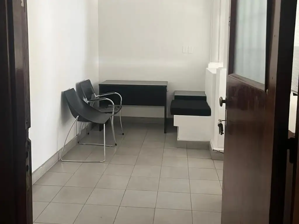 Ingreso a oficina con espacio de recepción. Oficina amplia con ventanal con vista a peatonal. Aire acondicionado. 4 escritorios, sillas y mueble de guardado. Oficina privada con 3 escritorios, ventanal, aire acondicionado y mueble de guardado.