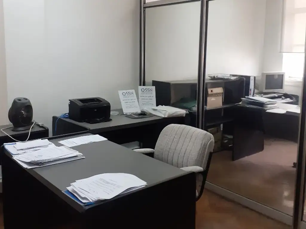 Está dividido en: recepción 4 oficinas, sala de reunión y pequeña cocina. Los 2 baños son propios.