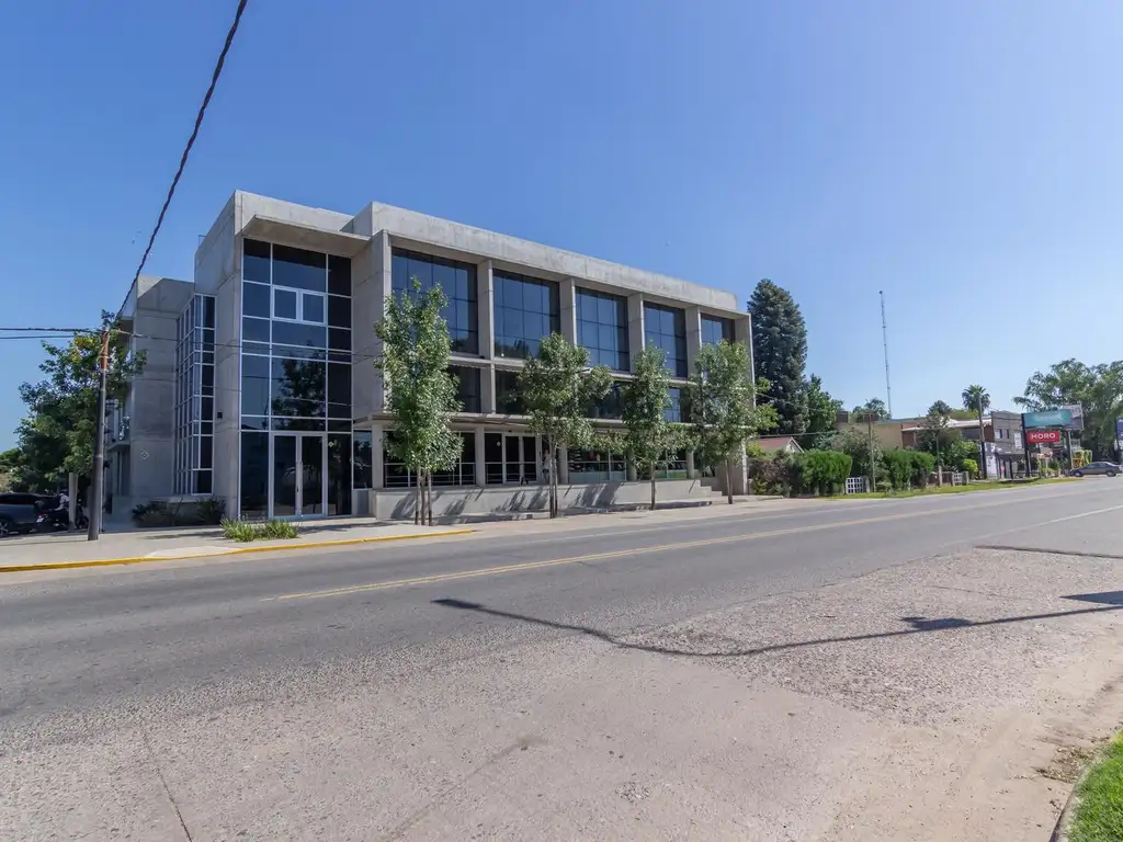 Descripción: Oficinas con ventanales que dan a ruta 9, cuentan con vista despejada y gran luminosidad. Se encuentran en el primer piso al cual accedemos mediante ascensor. Baños de uso común. Un desarrollo planteado en dos alas donde todas las unidades podrán disfrutar de sus amplias terrazas con vista al espectacular jardín central, escenario común a todas las unidades.