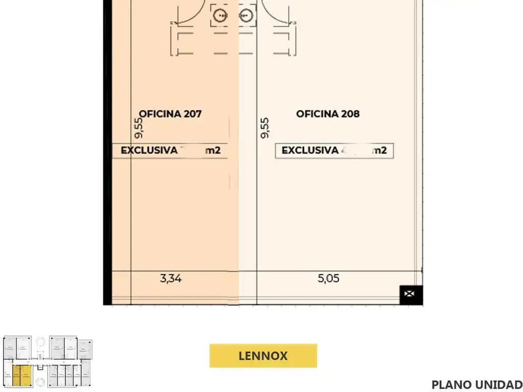 Importante oficina con frente vidriado, superficie 81 m2. Se acceden por ascensor y/o escalera, y cuentan con baño opcional.