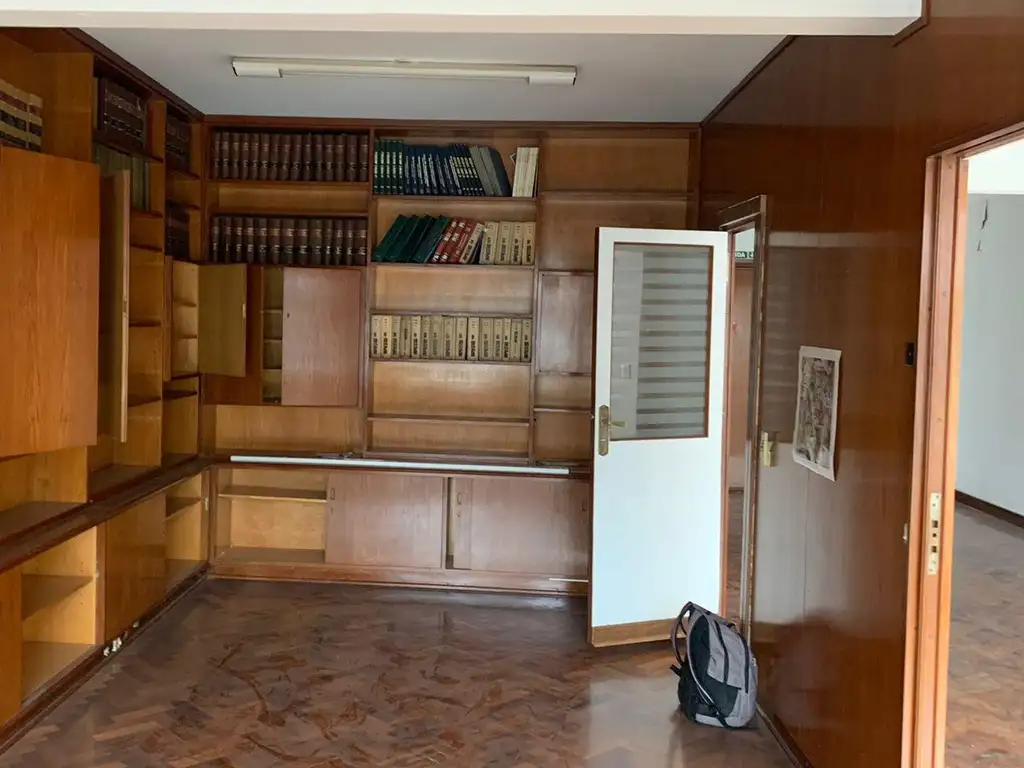 Una oficina 2 ambientes con un amplio ambiente con la cocina integrada, y una segunda oficina separada cono mobiliario de madera.