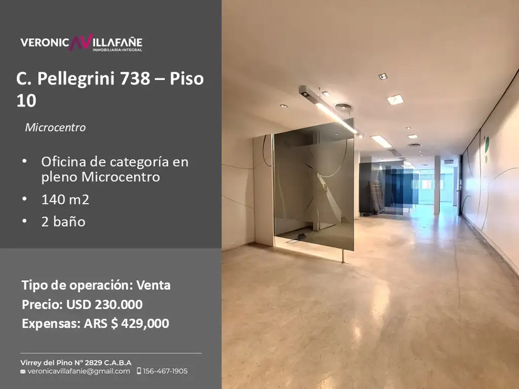 Excelente Oficina 140 m² PISO 10 C. PELLEGRINI 738