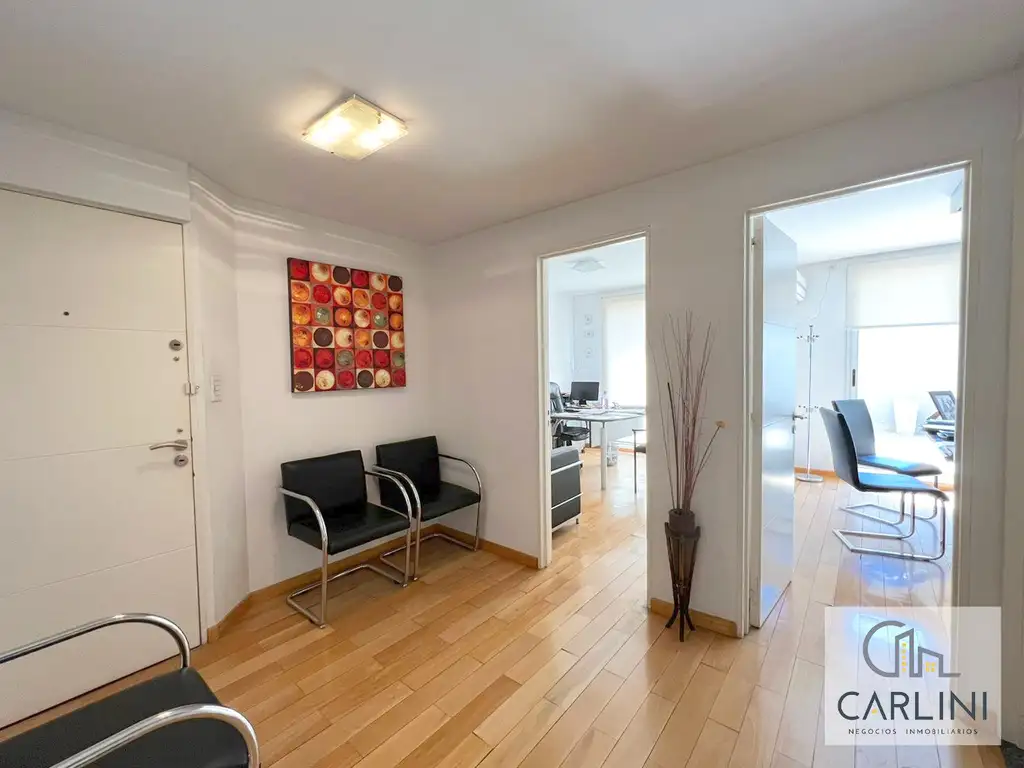 Se encuentra ubicada en primer piso, cuenta con amplia recepción y sala de espera, 2 oficinas privadas con salida a un patio interno de uso exclusivo, una sala de reuniones con vista al frente, baño completo y kitchenette amoblada. La cochera no está incluida en el precio.