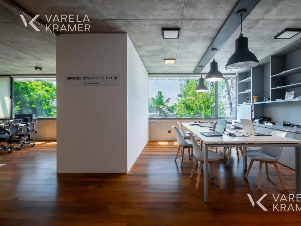 La oficina tiene orientación norte, con vistas verdes que aportan luz natural y una sensación de calma durante toda la jornada. La calidad de construcción es excelente, con estructura de hormigón y pisos de madera, que le dan una imagen sólida, moderna y a la vez cálida.
