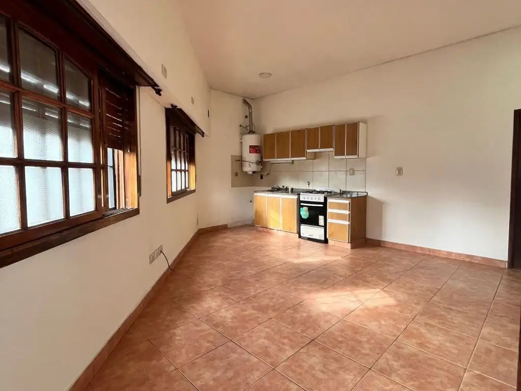 AL FRENTE CON ENTRADA INDEPENDIENTE. Se ingresa directamente desde la calle, primero a un hall de entrada desde el cual se accede al ambiente, muy luminoso y aireado, ya que cuenta con dos ventanas a la calle. La cocina se encuentra equipada y el baño es completo con box de ducha.