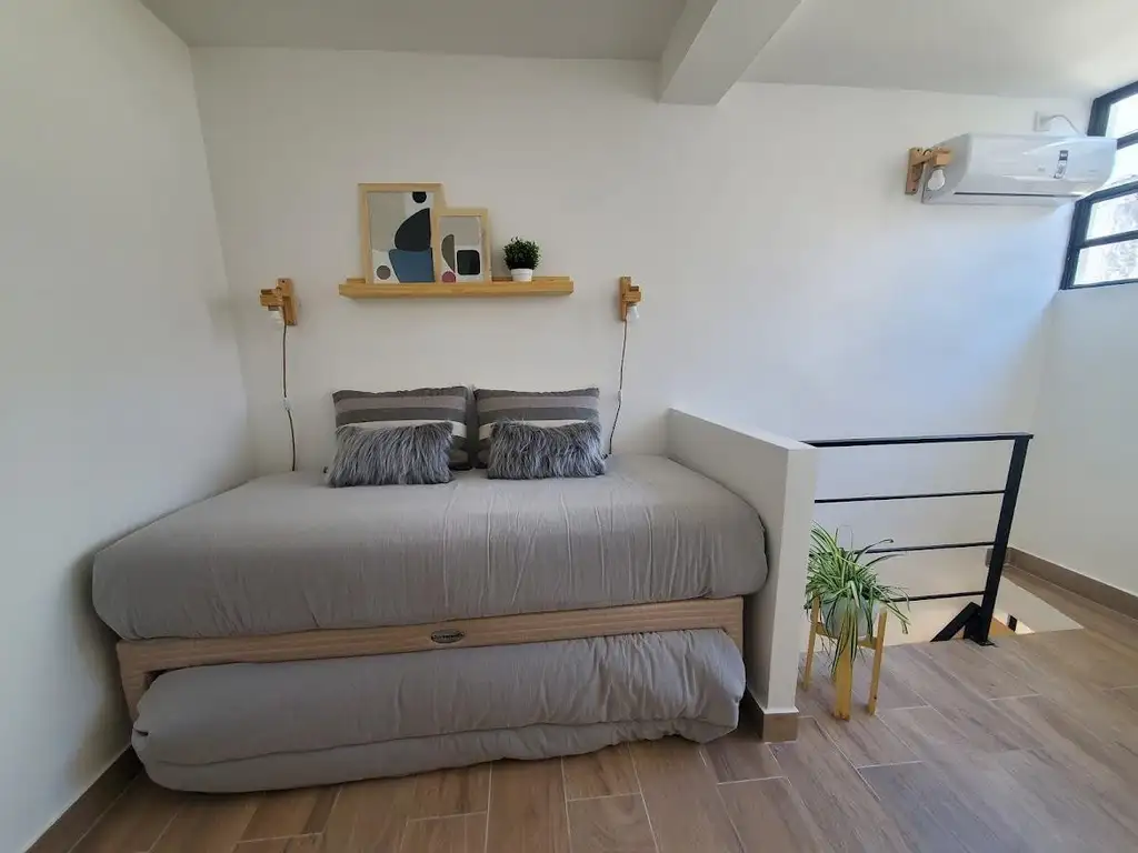 Al subir se accede a un escritorio grande, un placar de buen tamaño y una cama que puede hacerse de dos plazas. También en esta planta se encuentra un baño completo con ducha.