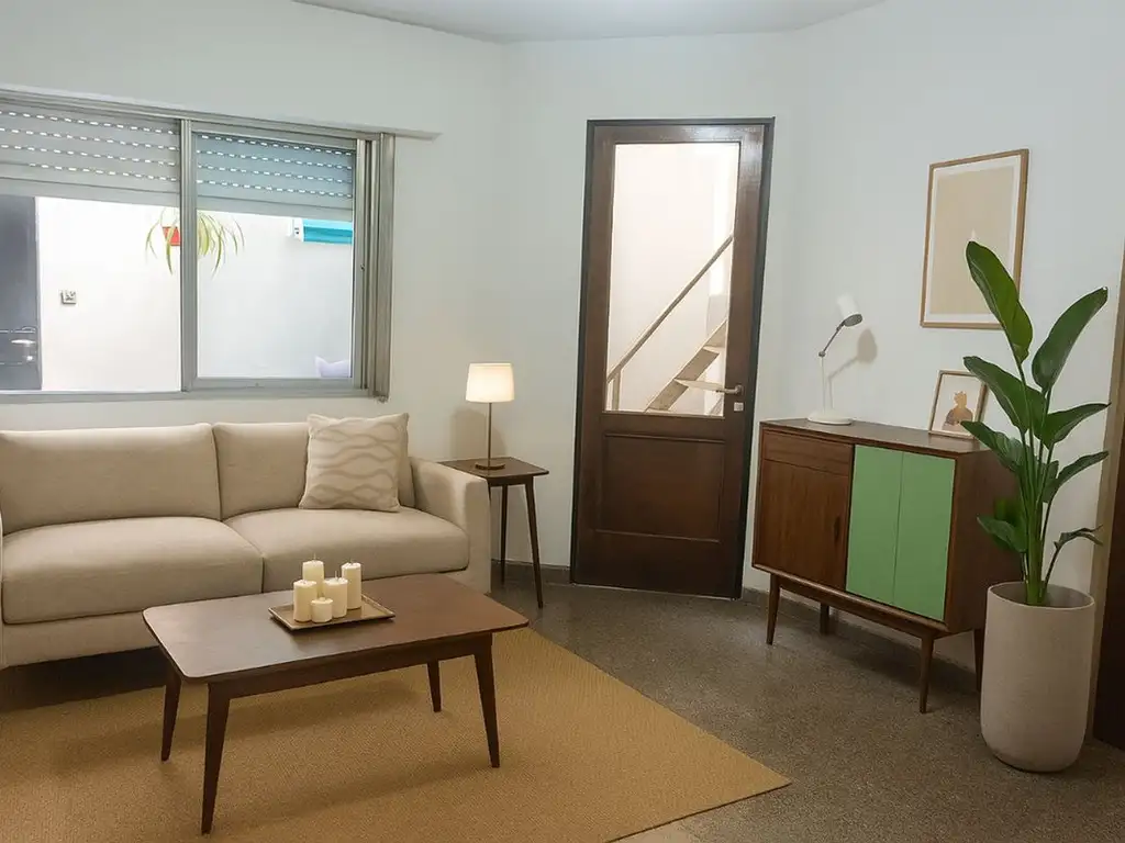Este PH de 3 ambientes se encuentra en la planta baja y ofrece un espacio cómodo y funcional. Al ingresar, se encuentra un amplio living que conecta con el baño, la cocina y un cuarto de servicio. Desde el living, se accede al patio, el cual es un punto clave para subir a la segunda planta mediante una escalera.