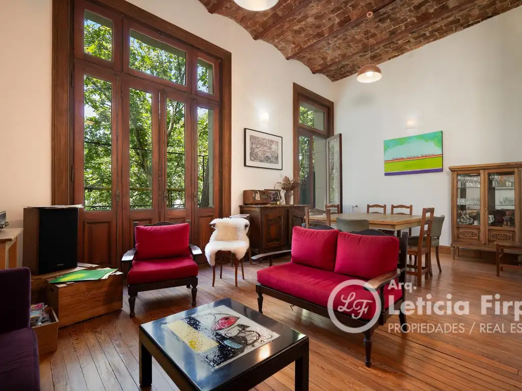 La planta principal ofrece un amplio living y comedor al frente, con vistas abiertas al verde de los árboles, pisos de madera, carpinterías de época y techos altos de bovedilla que refuerzan su impronta clásica. Se suma una sala de TV o segundo living, ideal como espacio de estar íntimo, escritorio o biblioteca. A continuación, una galería de distribución vidriada, muy luminosa, acompaña el recorrido interior, aportando luz natural y carácter, y conectando de manera armónica los distintos ambientes.