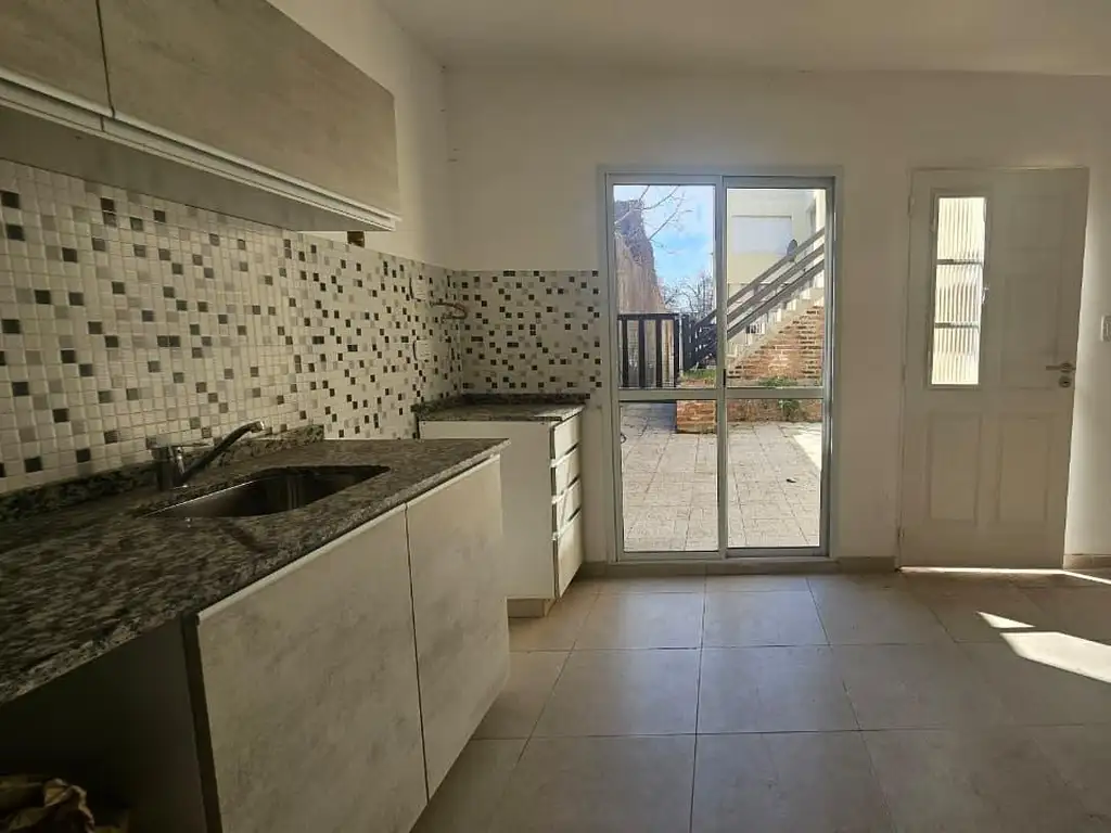 Es la ultima unidad del pasillo, ingreso con patio de 30m2 totales.