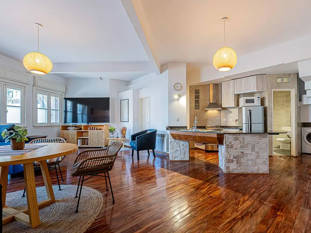 La unidad fue hecha íntegramente a nueva con materiales de primera calidad. Puerta blindada, cañerías FV en toda la unidad, pisos flotantes importados, pilares de piedras importados en la mesada de la cocina, calefacción por 6 radiadores en los ambientes de planta baja y baños, caldera Peisa Dual, bomba presurizadora, dos aires acondicionados frío/calor de 3000 frigorías y uno de 6.000 frigorías. Interiores de placares hechos a nuevo. La unidad no paga expensas.