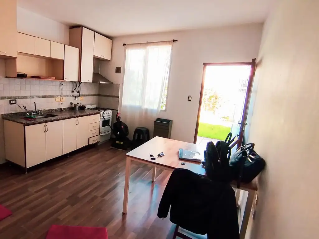 Muy luminosos y buen estado se ingresa por pasilllo a cocina comedor, con muebles bajo y sobre mesada , extractor, y calefon, con ventilacion y salida al patio trasero, con vereda y fondo verde, pasillo distribuidor hacia los 2 dormitorios y baño completo, todos los ambientes con ventanas hacia el patio con verde, parrilla , ideal para disfrutar de un espacio seguro, silencioso y soleado .-calefaccion por tiro balanceado- zona transitada , transporte publico sobre calle 8, de facil acceso, pero con toda la tranquilidad, de estar atrás, muy silencioso. y soleado,.