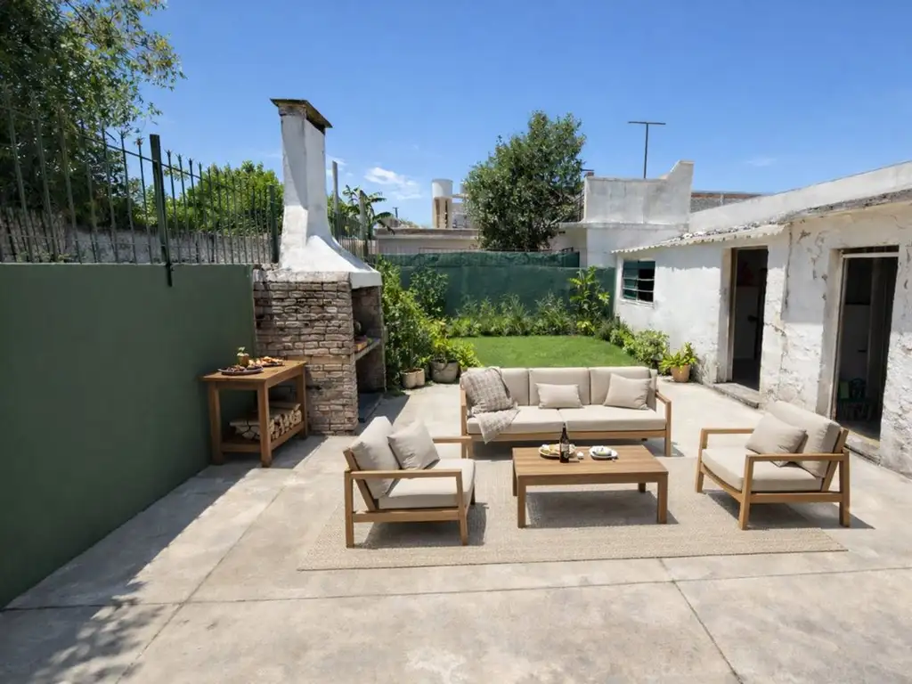 El patio cuenta con parrilla y galpón, ofreciendo un espacio ideal para uso social y guardado.