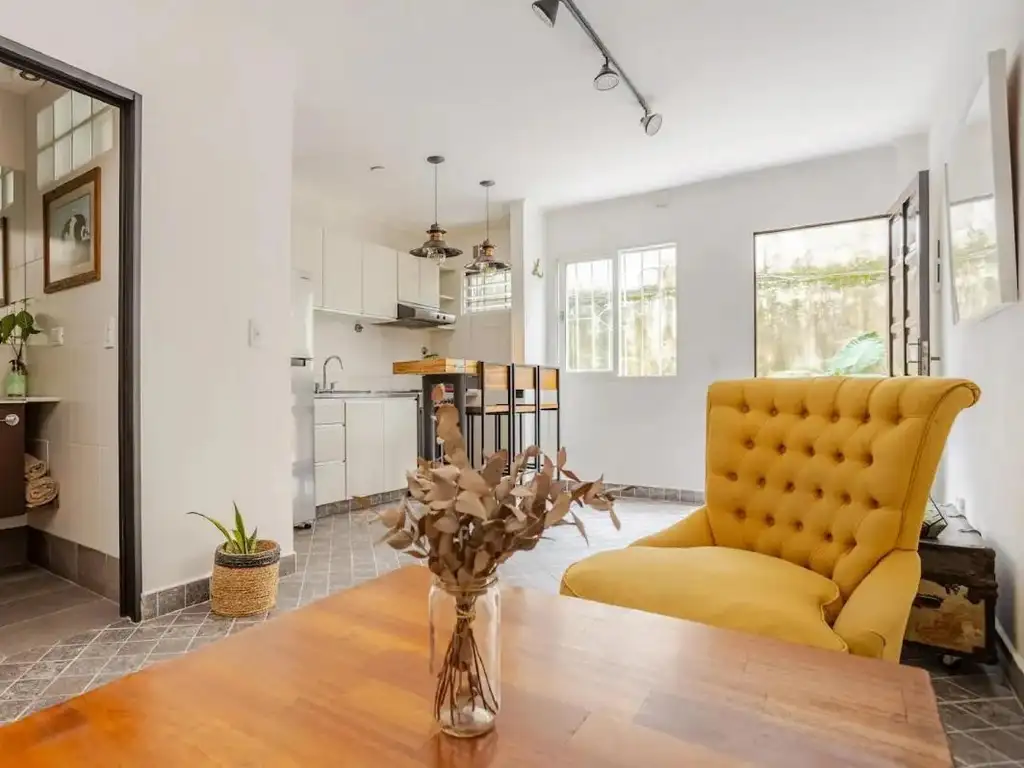 Se accede por un amplio comedor muy luminoso, a la derecha nos encontramos con la cocina integrada, con un baño completo.