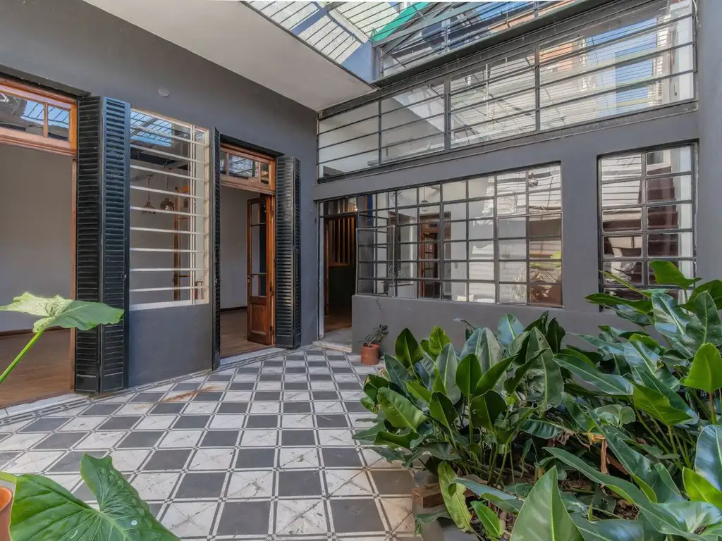 La propiedad cuenta con un gran patio muy luminoso que se conecta a una gran sala con pisos de madera, un hogar y chimenea.