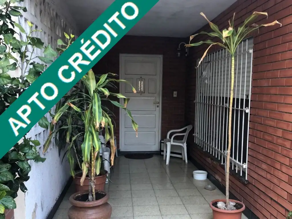Dpto. tipo Casa de 3 ambientes en planta baja. Compuesto por patio semicubierto al frente, living, cocina con alacena y bajo mesada, dos dormitorios con pisos de pinotea y flexiplast, baño, lavadero cubierto, dependencia de servicio, patio y parque con pileta al fondo, dos bauleras y quincho semicubierto. Muy buen estado!